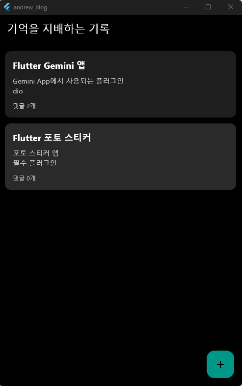 로컬 데이터베이스 Hive를 활용하며, 깔끔한 UI와 객체지향 구조를 갖춘 경량 블로그 앱을 만들어 봅니다.기능 설명1. 글 목록 화면 (PostListPage)Hive에 저장된 글을 불러와 목록으로 표시각 글은 카드 형태로 표시되며:제목, 내용 일부, 댓글 개수 표시홀/짝수 행마다 배경색 다르게 적용각 글을 탭하면 상세 페이지로 이동플로팅 버튼(➕) 클릭 시 글쓰기 화면으로 이동2. 글 작성 화면 (PostWritePage)제목과 내용 입력 후 저장 가능저장 시 Hive에 새 Post 객체로 추가저장 완료 후 글 목록 화면으로 이동3. 글 상세 화면 (PostDetailPage)선택한 글의 제목 + 전체 내용 표시글 삭제 버튼 → Hive에서 해당 글 제거 후 목록으로 이동목록으로 버튼 → 이전 화면으..