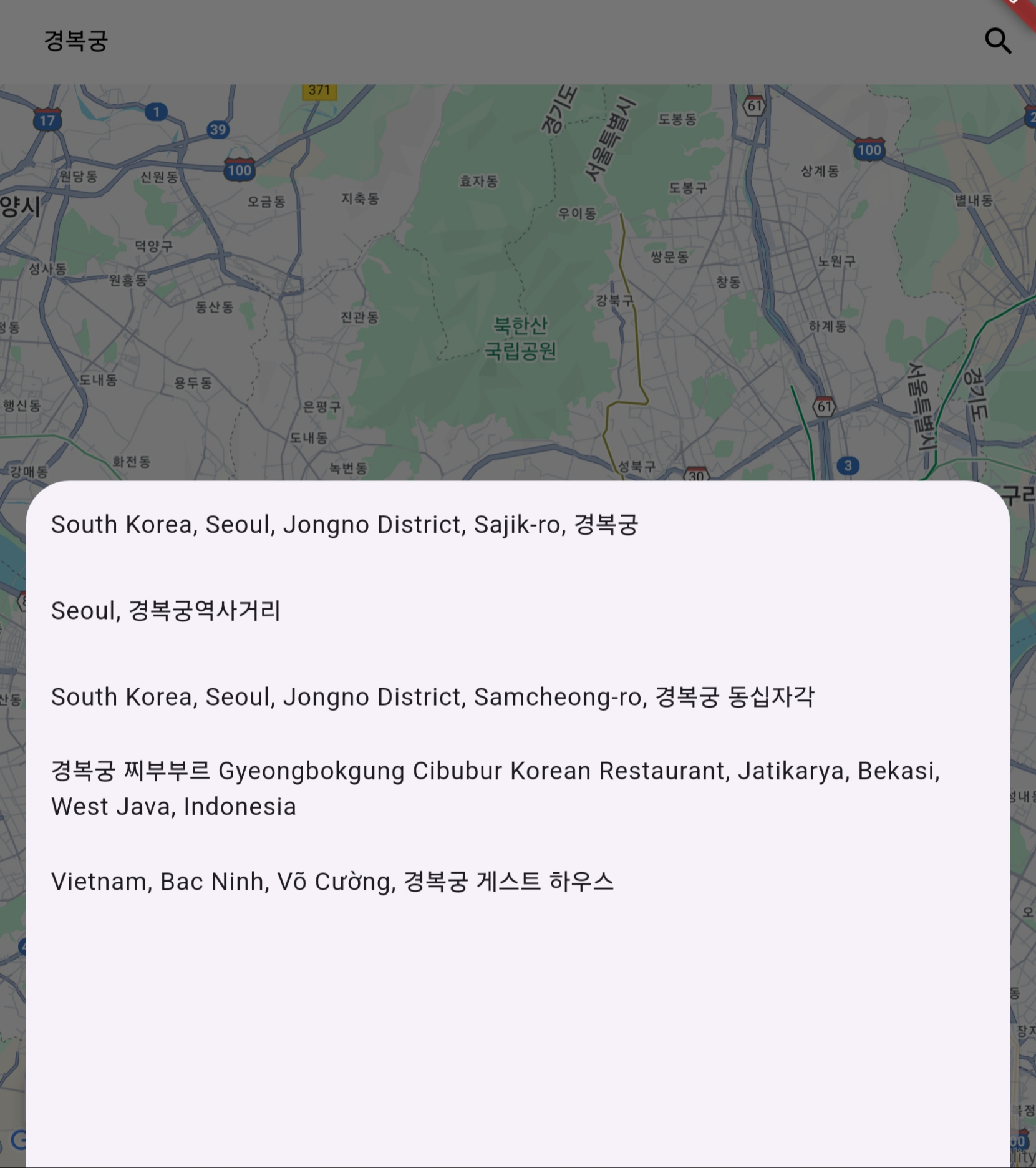 /// 주소 자동완성 검색 및 결과 목록 표시