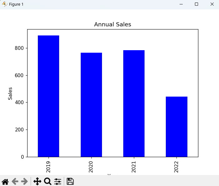 아래는 Pandas Visualization을 사용하여 간단한 막대 그래프를 생성하는 예시 코드입니다. 이 예제에서는 무작위 데이터를 생성하여 연간 판매량을 나타내는 데이터프레임을 만들고, 이를 막대 그래프로 시각화합니다.